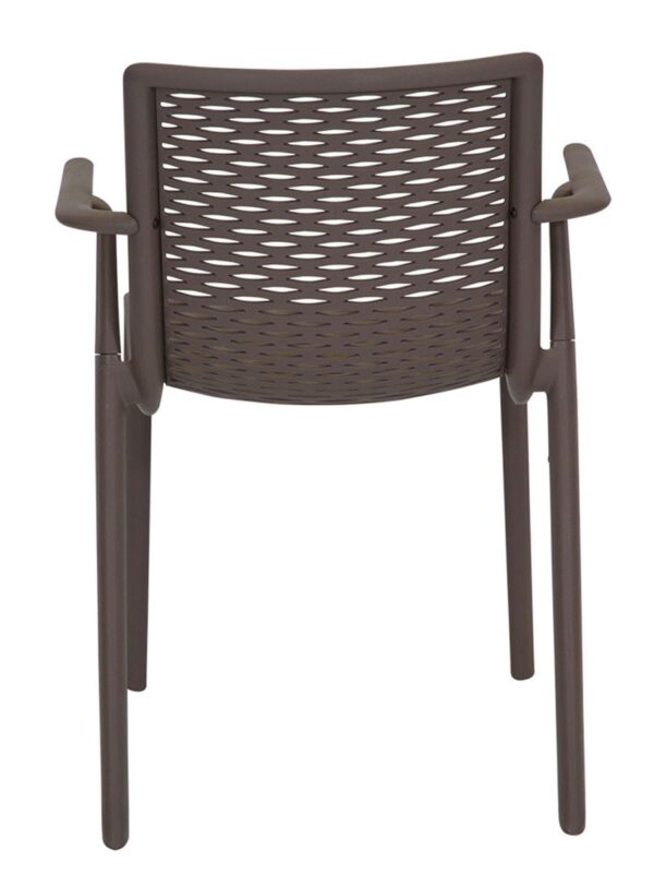 Armchair for indoor and outdoor use. Injected with fiberglass and PP using gas assisted injection moulding technology. Stackable. UV protection.